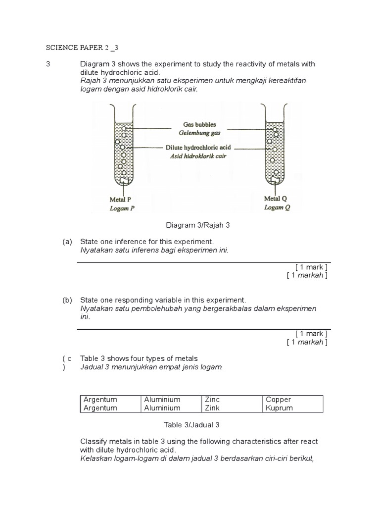 5 9 3 Siri Kereaktifan Logam Soalan Subjektif Sains Spm